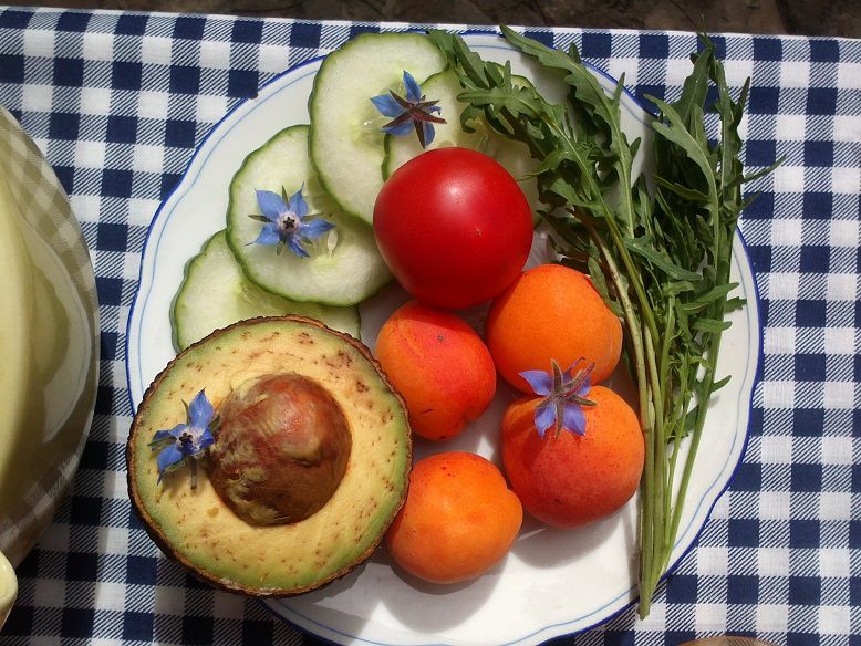 ...mit Obst und Gemüse zum Trinken, hier ergänzt mit Obst der Saison.