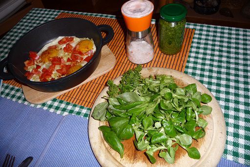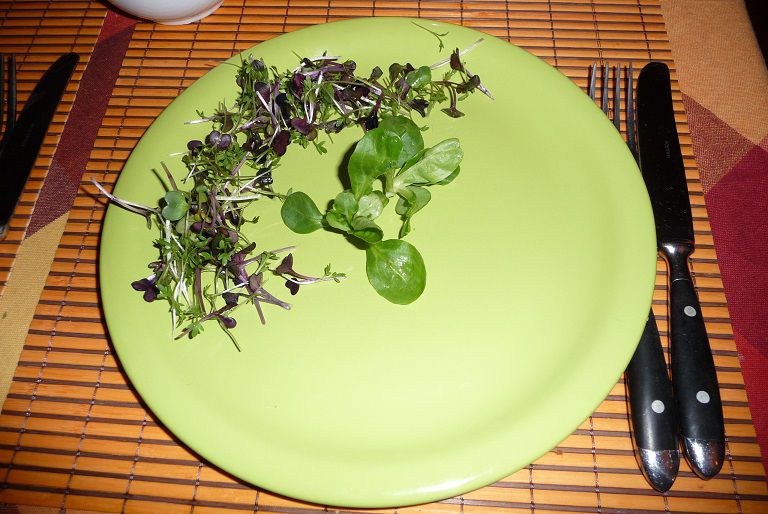 schmeckt lecker als Saft entweder pur (schmeckt ein wenig herb) oder mit Karotten, Gurke (schmeckt sehr lecker) oder mit Tomaten., dazu ein paar Kräuter: Basilikum, Petersilie o.a – was so gerade wächst. Mit Gurke ist der Saft sogar richtig erfrischend.